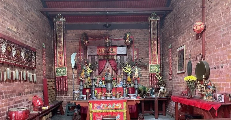 We did the whole journey ending at the Chinese Joss House Temple, one of the last buildings of its kind in Australia and now considered of great architectural, historical and social importance. In the mid-1800s, a fifth of Bendigo’s population hailed from China. They came as miners and merchants, bringing their customs, culture and beliefs to the goldfields. This temple, one of seven constructed in the Bendigo area, opened in 1871 and was used as a place of worship until 1930s for the people of the Iron Bark Camp. There is very little left to see of the other original Chinese buildings and this too fell into disrepair after being abandoned by the declining Chinese mining population. The Commonwealth acquired the wider site in 1941, clearing the old camp site but sparing the temple when Sir John Jensen, Assistant Secretary for the Department of Supply, refused permission for its demolition. Thankfully, this beautiful piece of cultural history was restored allowing us to learn about it.