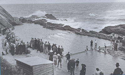 This part of the country has been labeled The Sapphire Coast for tourist purposes, an interesting marketing technique that makes it easy to group places, experiences and information about a geographical area all rolled up in an enchanting name that makes you want to explore it. Before we learned this fact, we spotted a couple of other ‘places of interest’ on Wikicamps that we turned off to visit. At Bermagui where, back in the 1930s a natural tidal pool, known as the Blue Hole, was enlarged to a length of around 75m to make a swimming facility suitable for training and competition swimming. The project was the idea of a local philanthropist, Bill Dickinson, who contributed significant private funds which in turn attracted government grants and charitable donations. Rock was blasted out with dynamite and local labour shovelled the spoil out into the sea and concrete was used to square off one end, build a children’s wading pool and steps down the cliff path. The Hole was renamed The Blue Pool and is now considered one of the best sea water pools in Australia. These photos were taken of the information board near the pool but there was no acknowledgement provided.